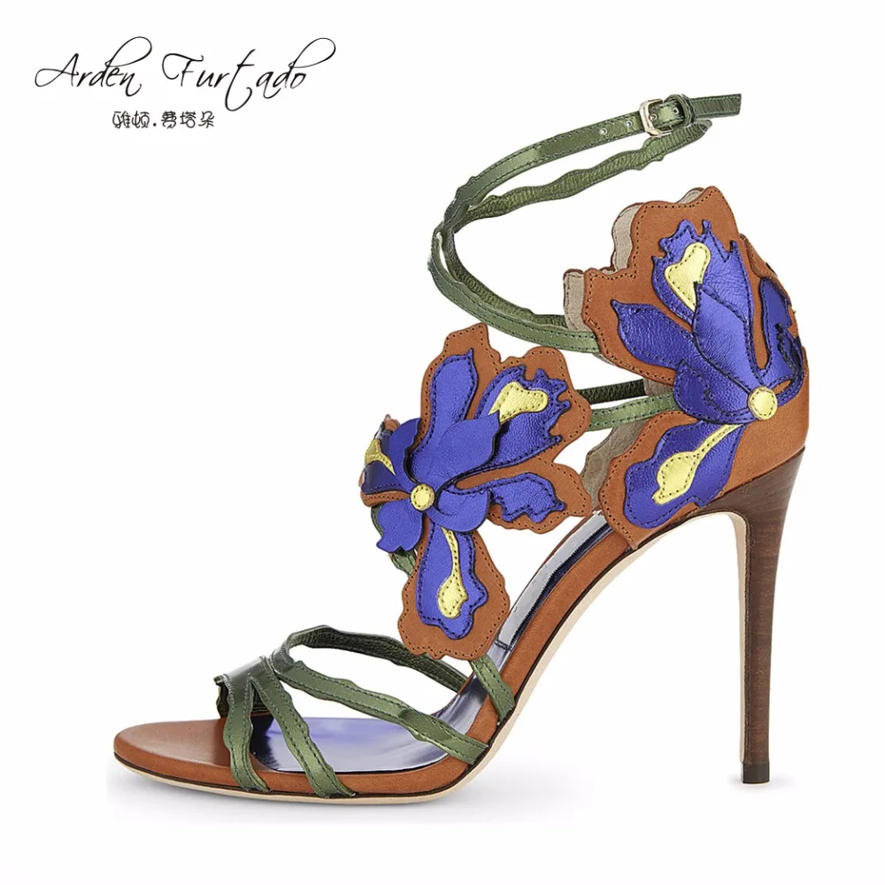 Новинка года; Летние босоножки с вышивкой на высоком тонком каблуке